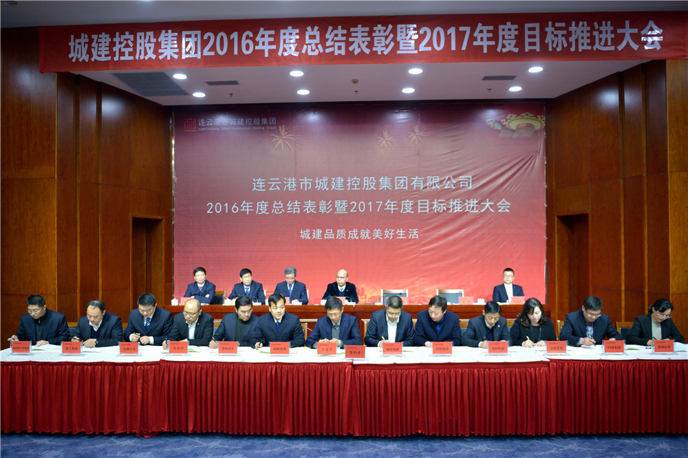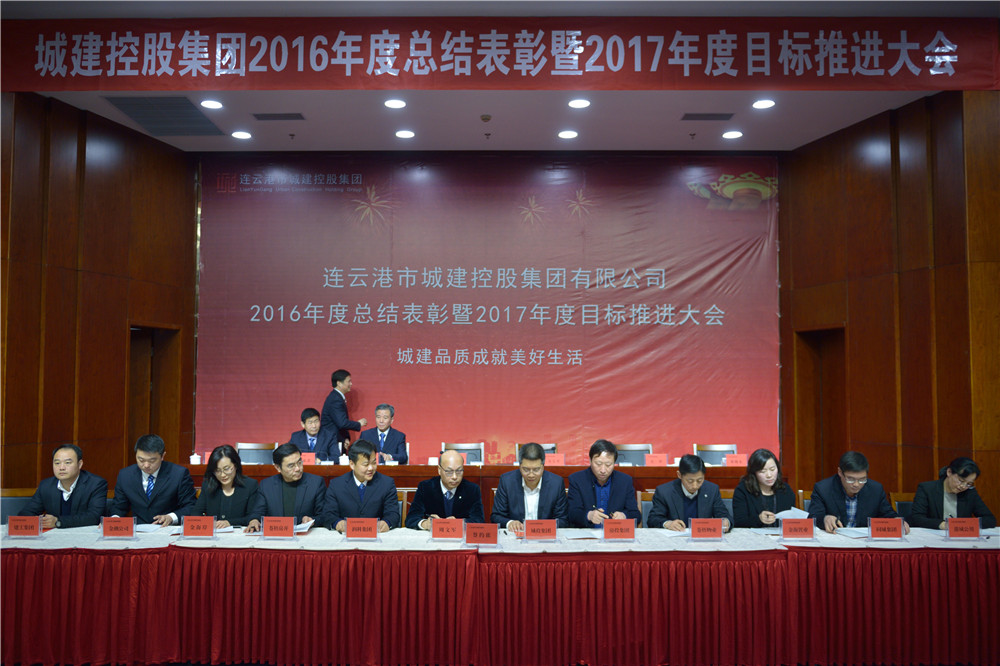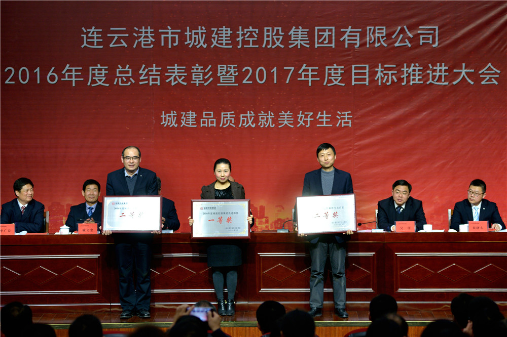 戚文忠副總經(jīng)理宣讀《關(guān)于連云港市城建控股集團(tuán)2016年最具影響力“十大事件”評(píng)選結(jié)果的通報(bào)》;吳洋副總經(jīng)理宣讀《關(guān)于表彰城建控股集團(tuán)系統(tǒng)2016年度先進(jìn)集體和先進(jìn)個(gè)人的決定》;集團(tuán)領(lǐng)導(dǎo)班子成員向獲獎(jiǎng)的先進(jìn)集體和先進(jìn)個(gè)人代表進(jìn)行了頒獎(jiǎng),獲得先進(jìn)集體的代表和先進(jìn)個(gè)人代表作了交流發(fā)言;會(huì)上還簽訂了安全生產(chǎn)責(zé)任狀、經(jīng)營(yíng)目標(biāo)責(zé)任狀、廉潔責(zé)任狀、黨建責(zé)任狀。