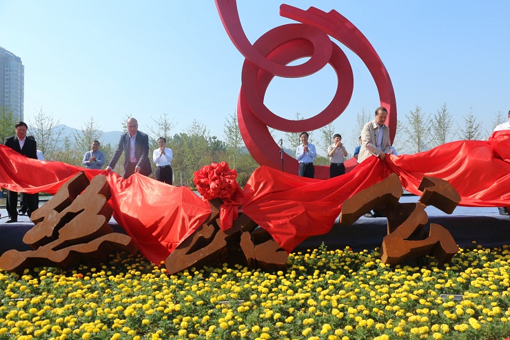 5月18日上午,新絲路零點(diǎn)公園舉行開園儀式。市政府副市長尹哲強(qiáng)、市政府副秘書長王友君、連云區(qū)區(qū)委書記陳書軍及城建控股集團(tuán)董事長周文軍共同為公園揭牌。