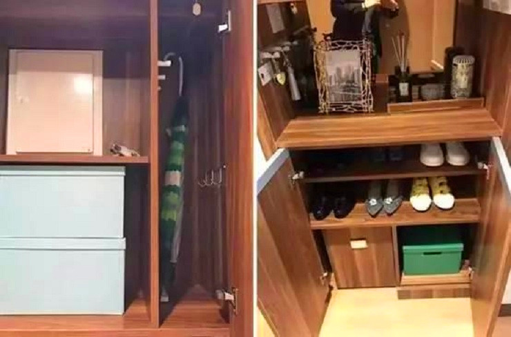 ·玄關(guān):90㎡的戶型做玄關(guān)也較為常見,但較于普通玄關(guān)收納,保利鈴蘭公館的收納更為實用。除下方鞋柜外,縱向的掛衣桿方便出入時放置衣物,開放式的物臺便于放置東西,下方還準(zhǔn)備了換鞋坐凳,并帶有儲物功能。