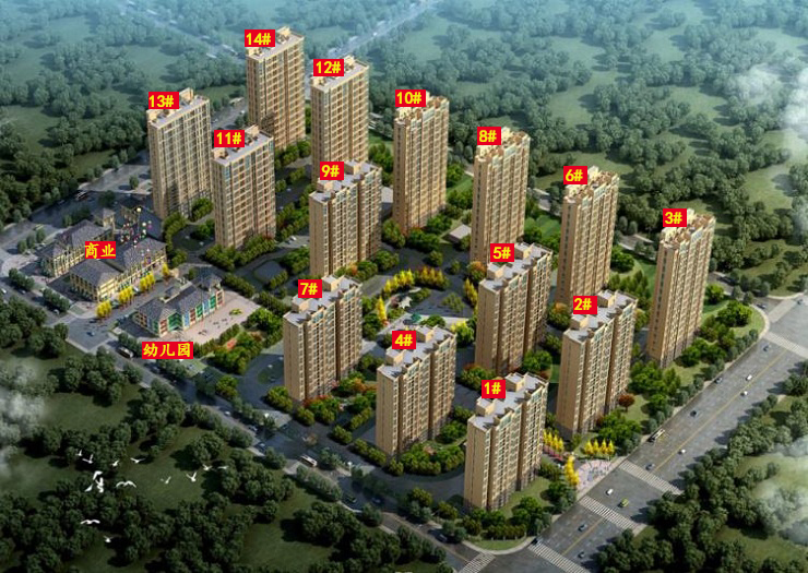 小區(qū)總占地面積150畝,總建筑面積33.2萬平方米,其中地上建筑面積251283平方米,地下建筑面積81012平方米,容積率2.5,建筑密度16.28%,綠地率37.63%,車位配比1:0.8,總戶數(shù)3098戶,車位2466個(gè)。項(xiàng)目為住宅性質(zhì),1#、4#、7#等三棟樓為地上23層住宅;2#、5#、9#等三棟樓為地上26層住宅;11#、13#等兩棟樓為26層公租房;12#、14#等兩棟樓為32層公租房。