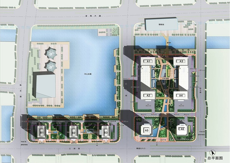 該項目占地面積約14.84萬平方米,建筑用地面積約8.41萬平方米,規(guī)劃總建筑面積約44.25萬平方米。項目分為A區(qū)地塊和B區(qū)地塊。