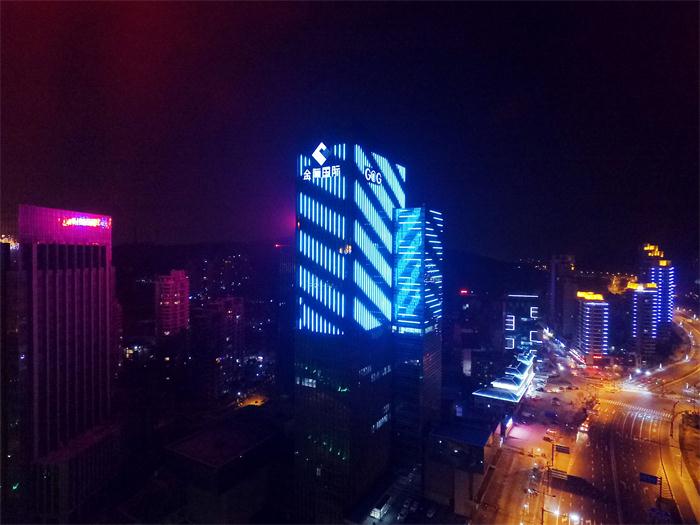 金海國際大廈位于在海一方公園,處在旅游及商務核心地段,樓體總高120米,為區(qū)域地標建筑,該樓體亮化工程由星辰照明公司設計、施工,該照明工程秉承“適用、安全、經(jīng)濟、美觀”的原則,照明設計為媒體立面效果,采用3000多套電腦控制的RGB-DMX512全彩外控線條燈,可根據(jù)不同的信號顯現(xiàn)出不同的效果、不同的情景模式,如節(jié)假日模式可渲染節(jié)日氣氛。該亮化工程也成為該區(qū)域夜景新亮點,對提高城市形象,促進經(jīng)濟發(fā)展都有重要意義。
