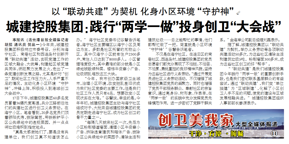 城建控股集團(tuán):踐行“兩學(xué)一做”投身創(chuàng)衛(wèi)“大會戰(zhàn)”