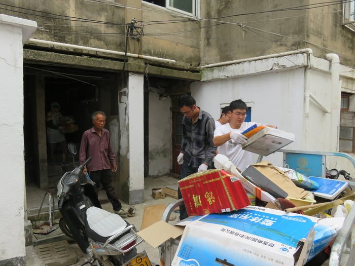 活動中,志愿者們頂著酷暑對延安村小區(qū)道路垃圾、雜草及違規(guī)堆載物進(jìn)行集中清理,并挨家挨戶對長期堆放在樓道衛(wèi)生死角的生活垃圾和廢棄雜物進(jìn)行搬清。正值夏季高溫,樓道內(nèi)的生活廢棄物因長期堆壓捂悶發(fā)生霉變,不時傳出刺鼻異味。志愿者們不怕苦、不嫌臟,與社區(qū)工人一起經(jīng)過3個小時奮戰(zhàn),完成了3條小區(qū)道路、7個樓棟單元的清理任務(wù),42戶小區(qū)居民的衛(wèi)生環(huán)境得到明顯改善。
