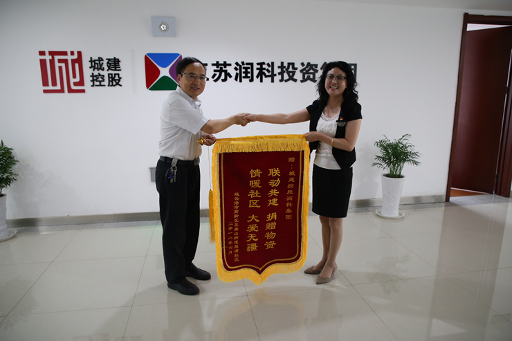 6月13日,花果山街道昌浦社區(qū)孫主任一行來(lái)到城建控股潤(rùn)科集團(tuán),將一面繡有“聯(lián)動(dòng)共建、捐贈(zèng)物資、情暖社區(qū)、大愛(ài)無(wú)疆”的錦旗送到潤(rùn)科集團(tuán)總經(jīng)理孟凡俊的手中,感謝城建控股對(duì)昌浦社區(qū)創(chuàng)文工作的支持和幫助。