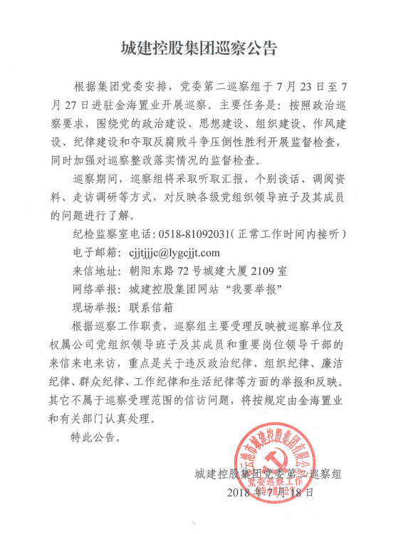 集團黨委第二巡察組對金海置業(yè)開展巡察公告