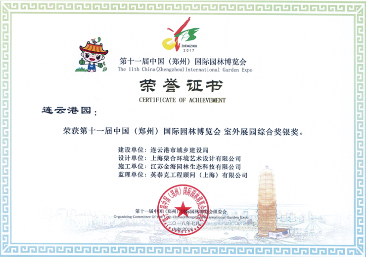 第十一屆中國(guó)(鄭州)國(guó)際園博園連云港展園榮獲多項(xiàng)大獎(jiǎng)