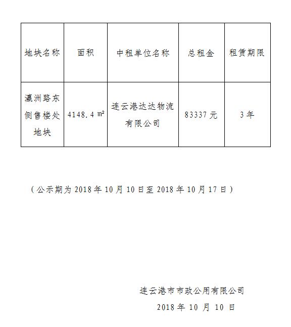 連云港市市政公用有限公司瀛洲路東側(cè)售樓處地塊招租結(jié)果公示
