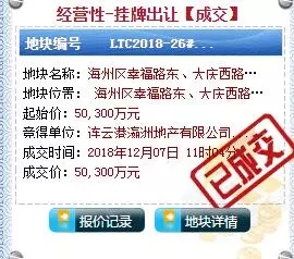 12月7日上午,隨著連云港市國(guó)土資源網(wǎng)第四批土地拍賣結(jié)束,房投集團(tuán)黃海度假村地塊以5.03億元順利掛牌出讓。