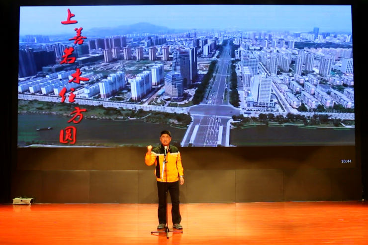 本次比賽有來自知名高校、優(yōu)秀企事業(yè)單位共20名青年代表進(jìn)入決賽。決賽中,馬可毅以淮海戰(zhàn)役中解放區(qū)人民進(jìn)行支前運(yùn)動(dòng)所用小推車為主線,將解放區(qū)軍民英勇抗戰(zhàn)、舍己為國(guó)的抗戰(zhàn)精神化身為“小推車精神”,通過對(duì)其當(dāng)兵時(shí)嚴(yán)寒酷暑里執(zhí)行任務(wù)、巡邏執(zhí)勤的回憶,以及退伍后作為一名排水工人,默默無聞、任勞任怨奮戰(zhàn)在排水管網(wǎng)深處的堅(jiān)持,去印證“全心全意為人民服務(wù),做黨和人民的忠誠(chéng)衛(wèi)士”的莊嚴(yán)誓詞,去傳承、弘揚(yáng)回蕩在淮海大地上,激勵(lì)著千萬淮海人民的“小推車”精神。
