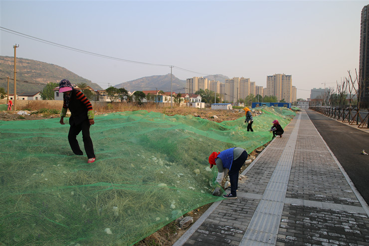 自4月18日開始,潤科集團領(lǐng)導(dǎo)班子現(xiàn)場坐鎮(zhèn)指揮,督促施工單位組織人員對在建工地裸土進行全覆蓋,安排專人負責開發(fā)片區(qū)內(nèi)征收地塊的裸土覆蓋工作,經(jīng)過40多名工人兩天加班加點的奮戰(zhàn),恒大西側(cè)、蒼梧新華苑東側(cè)等征收地塊實現(xiàn)裸土100%覆蓋,約16萬平方的裸土全部穿上了新“外衣”。