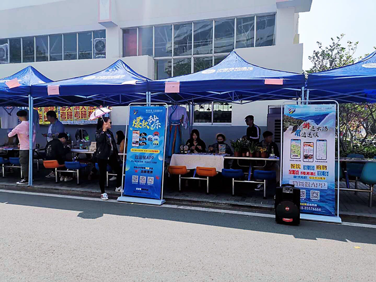 西游文旅與淮海工學院校方進行合作,結合本次民俗風情活動主題,利用限時爆款作為切入點,為逍遙猴平臺吸引粉絲和增加下載用戶量展開本次活動。活動現(xiàn)場,工作人員向來往大學生介紹平臺并演示操作流程,推廣平臺爆款產(chǎn)品、優(yōu)惠政策。