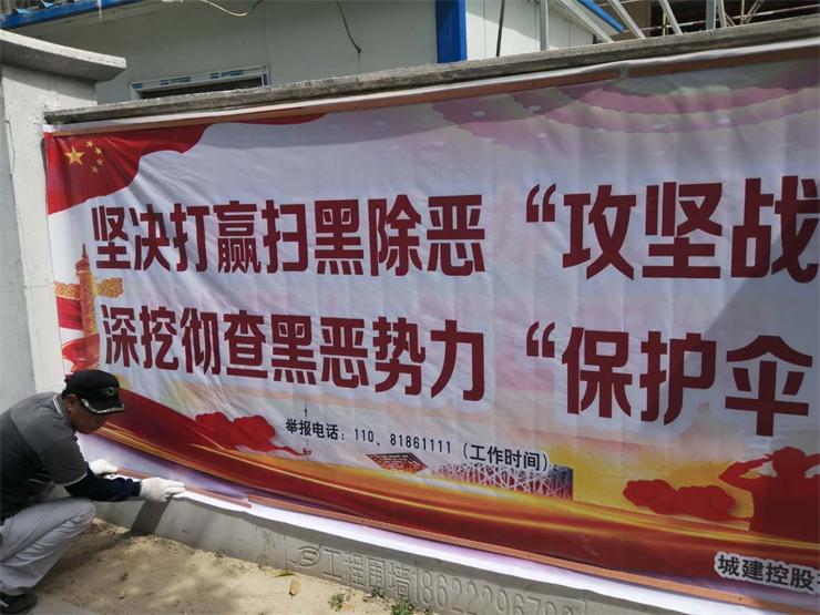 此次活動(dòng)中,建工集團(tuán)集中對(duì)權(quán)屬企業(yè)辦公場(chǎng)所、在建工地開展宣傳標(biāo)語(yǔ)懸掛踩點(diǎn)工作,確定醒目重要位置,并組織人員集中安排懸掛。同時(shí),對(duì)安裝有宣傳欄及電子屏的權(quán)屬企業(yè),要求其連續(xù)播放掃黑除惡專項(xiàng)斗爭(zhēng)標(biāo)語(yǔ)。