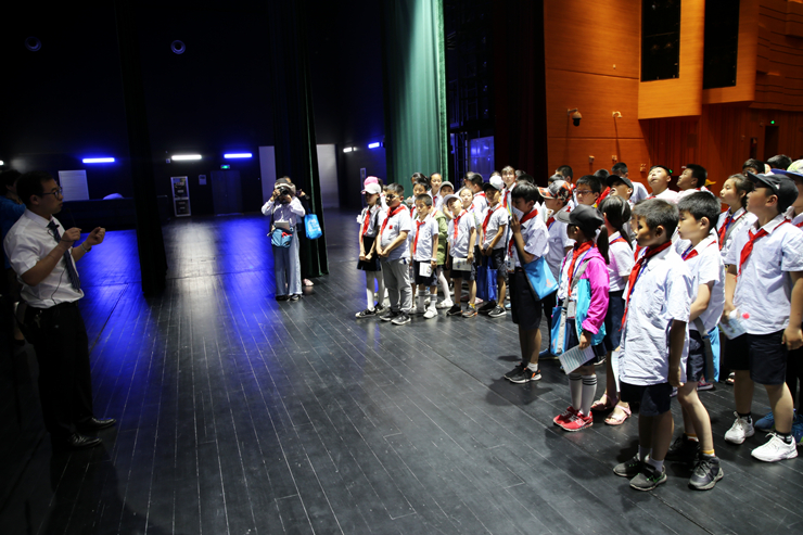 活動中,小記者們在大劇院工作人員們帶領(lǐng)下,參觀了大劇院的售票廳、大劇場、小劇場。在大劇場里,小記者們親自上臺,面朝觀眾席,體會在舞臺上表演的感覺。在大劇院工作人員的介紹下,小記者們了解了劇院全貌、設(shè)施設(shè)備功能,學(xué)習(xí)了觀演禮儀知識,探索了劇院后臺的“秘密”。老師們也紛紛拿出相機,給孩子們拍照留念,記錄美好瞬間。