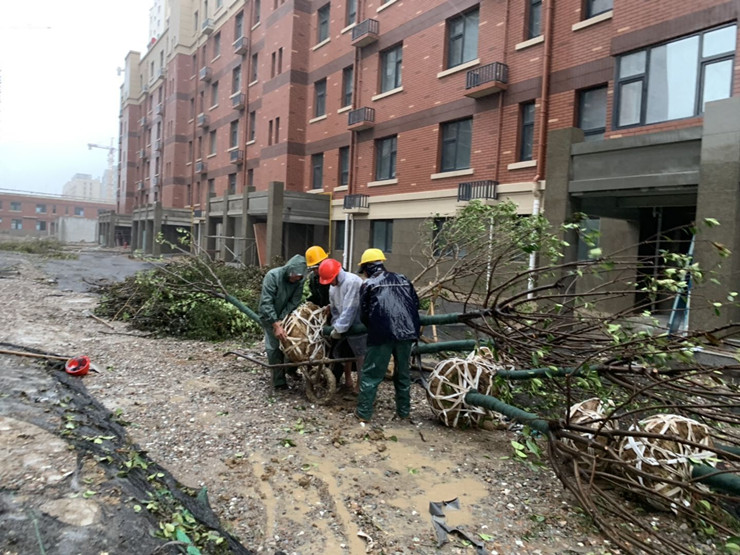 短時(shí)間的強(qiáng)降雨和雷暴大風(fēng)等強(qiáng)對(duì)流天氣會(huì)對(duì)樹(shù)木產(chǎn)生影響,為避免樹(shù)木枝干掉落、樹(shù)干傾斜砸傷行人及車(chē)輛,金潮公司金海園林對(duì)在手項(xiàng)目中道路、河道、街頭綠地、小區(qū)、公園等公共區(qū)域的綠化進(jìn)行全面巡查,對(duì)附屬設(shè)施、設(shè)備進(jìn)行安全隱患排查,同時(shí)做好綠化低洼地帶的排水工作,確保提高苗木成活率。