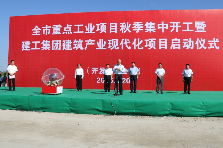 9月20日,我市舉行全市重點工業(yè)項目秋季集中開工儀式,建工集團建筑產(chǎn)業(yè)現(xiàn)代項目基地作為開發(fā)區(qū)主會場,隆重舉行了項目啟動儀式。市長項雪龍、市城建控股集團董事長周文軍共同為項目開工按動啟動球。