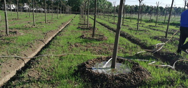 立夏以來,我市出現(xiàn)了罕見的連日高溫干旱天氣,金潮公司各苗木基地苗木生長受到不同程度的影響,部分綠地和苗圃地中的苗木出現(xiàn)了葉片發(fā)卷和樹皮灼傷現(xiàn)象。為防范持續(xù)高溫天氣加重對綠地和苗圃地中苗木的危害,確保高溫下樹木存活率,保證新栽苗木和苗圃樹木的正常生長,金潮公司各苗圃基地加班加點對各苗圃地塊進(jìn)行抗旱保苗工作。
