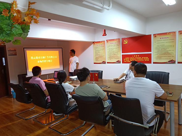 為進(jìn)一步提升員工營(yíng)銷專業(yè)知識(shí)水平和開(kāi)發(fā)市場(chǎng)的能力,幫助銷售業(yè)務(wù)人員解決在客戶推廣過(guò)程中存在的問(wèn)題,6月28日下午,萬(wàn)源廣告組織全體人員召開(kāi)了市場(chǎng)營(yíng)銷專題會(huì)。