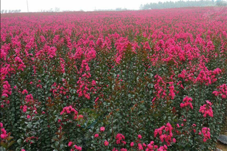 美國(guó)三紅紫薇,該品種純正,品質(zhì)好,花色紅艷,樹(shù)形優(yōu)美,花期長(zhǎng),耐寒性強(qiáng),對(duì)土壤要求不高。目前新壩苗木基地圃存三紅紫薇品種近300萬(wàn)株,主要種植于新壩苗木基地墻框村。