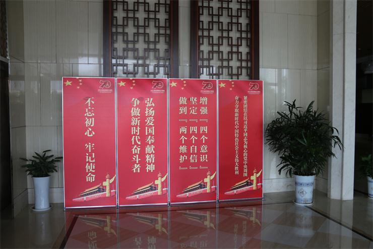 金海岸公司運(yùn)用多種媒介因地制宜開展氛圍營(yíng)造工作。在公司內(nèi)部辦公區(qū)域設(shè)立4塊70周年廣告宣傳展板,讓員工在工作之余,不僅能隨時(shí)都能閱讀到充滿正能量的文字,還營(yíng)造出濃厚的宣傳氛圍。在連云新城內(nèi)分別增設(shè)了道路圍墻圖版22塊和金海二橋及入海水道橋處高炮2塊,內(nèi)容包括熱烈慶祝祖國(guó)成立70周年、社會(huì)主義核心價(jià)值觀等標(biāo)語(yǔ),全力營(yíng)造連云新城濃厚的文化氛圍。