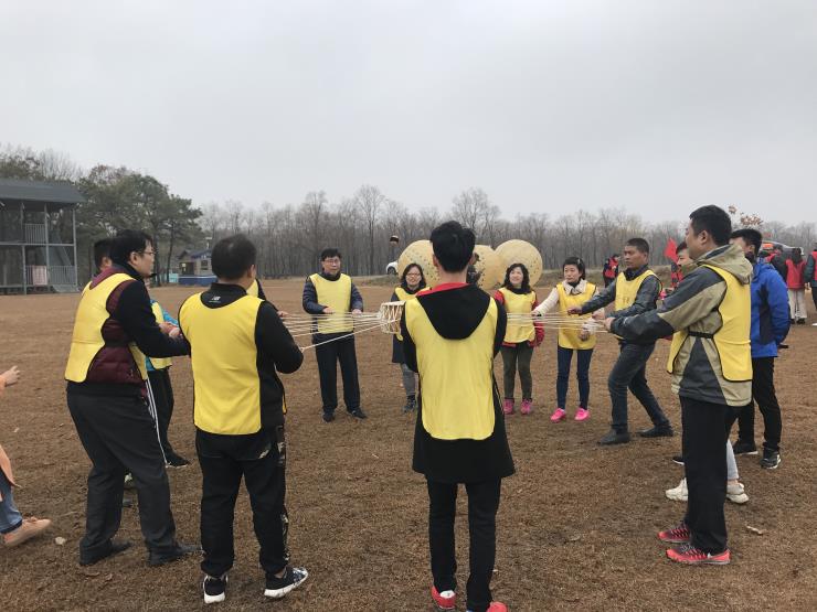 本次拓展訓練設(shè)置了不倒森林、同心鼓、吹氣球等項目,在教練的帶領(lǐng)下分兩個小組進行對抗。在團隊展示環(huán)節(jié),各小組隊員集思廣益、大顯身手,起隊名、喊口號、設(shè)計團隊LOGO,在熱情高亢的氛圍中拉開活動序幕。在正式比賽環(huán)節(jié),兩個小組展開了激烈的競爭,各組隊員們齊心協(xié)力,相互配合,挑戰(zhàn)一個個項目。面對困難和失敗,大家不氣餒、不放棄,摸索方法、總結(jié)經(jīng)驗,隊友之間互相打氣、鼓勁加油,展現(xiàn)了積極向上的團隊精神。