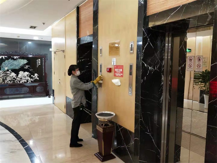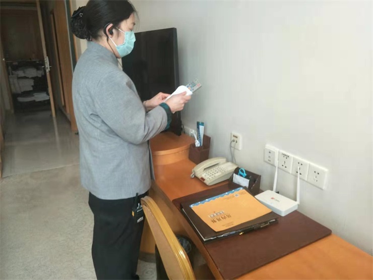 三是加強防控消殺,確保環(huán)境衛(wèi)生。酒店指定專人按病毒防控消殺要求對住宿客人必經通道、接觸物品、房間設施進行防控消殺,每日至少兩次,確保住宿環(huán)境衛(wèi)生。