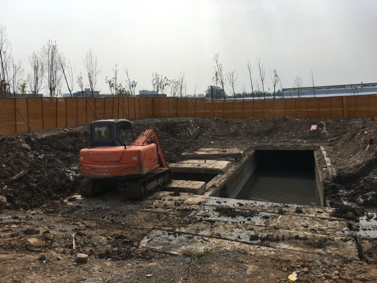 本工程位于金輝路與科苑路交叉口西邊綠化中,含一體化泵站一座、初期雨水截流閘一座及相應(yīng)的初期雨水截流管。項目部進(jìn)場以來,積極協(xié)調(diào)綠化、交通等單位辦理開工手續(xù),緊抓天氣等有利因素,采用“白加黑”“五加二”作業(yè)方式,搶抓進(jìn)度施工。目前已完成前期場地整理、污水管道托管準(zhǔn)備工作,為后續(xù)工序開展創(chuàng)造有利條件。