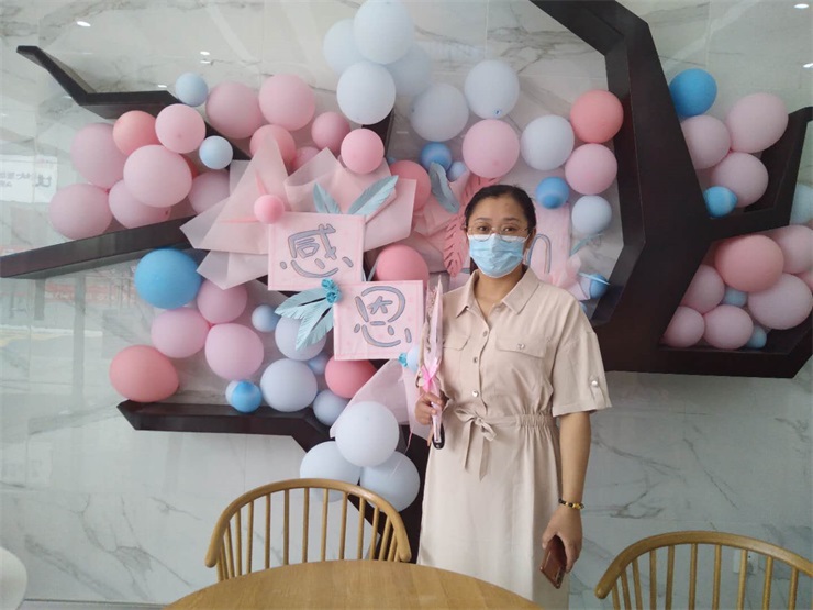 為了給住戶制造一份驚喜,管家早早將“告白墻”裝飾用到的彩色氣球、剪紙等準(zhǔn)備在一個(gè)房間內(nèi),在5月19日晚,加班加點(diǎn)將“告白墻”裝飾完畢,同時(shí)將獻(xiàn)給住戶的鮮花包裝好。5月20日早上,管家早早將一樓大廳進(jìn)行一遍消殺,然后等待住戶下樓,管家將鮮花獻(xiàn)給住戶,并和住戶合影留戀,看到住戶收到花束的那一刻,滿滿驚喜和感動(dòng),悠享公寓便有了更多堅(jiān)持的動(dòng)力。此次活動(dòng)除了為住戶獻(xiàn)花外,還為住戶準(zhǔn)備了另一份禮物,只要住戶在520期間收集一定數(shù)量的點(diǎn)贊或參與公寓內(nèi)宣傳視頻的拍攝,我們將免費(fèi)奉送禮品和抵用券。