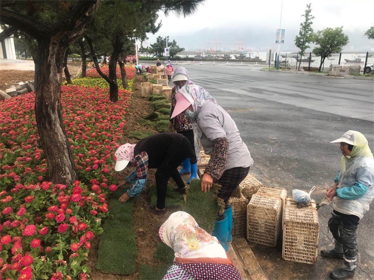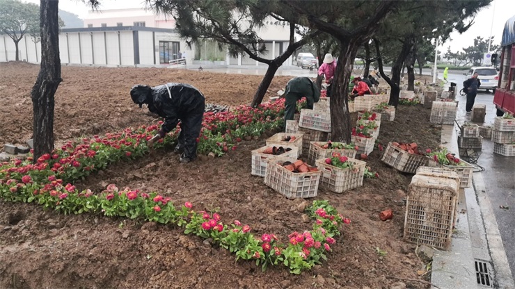 雖然正值雨天,但工人們干起活兒來依然有條不紊、一絲不茍。本次閱海樓綠化施工面積在4000平方左右,現(xiàn)已完成大樹移植、破除砼800余方,回填種植土1500余方,地表清理600平方,栽植孔雀草、百日草共計(jì)200平方,草坪400平方。