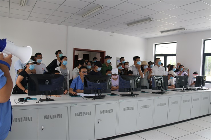 早上8點(diǎn),在檢查完“蘇康碼”并進(jìn)行體溫測量后,參觀人員在志愿者的引導(dǎo)下參觀了中控室,在技術(shù)人員介紹下了解了污水處理工藝流程。隨后,參觀人員分成兩組,在運(yùn)維人員帶領(lǐng)下,現(xiàn)場觀看了污水處理全過程,從生化池污濁的水質(zhì),經(jīng)二沉池等工藝處理,從出水口取出的水樣已十分清澈。