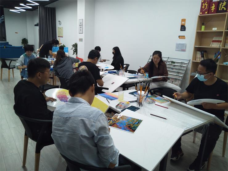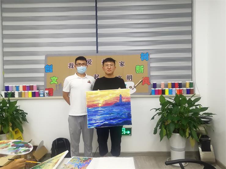 活動(dòng)中,老師首先介紹了繪畫(huà)步驟、材料性質(zhì)等方法和要點(diǎn)。隨后大家充分發(fā)揮想象力和創(chuàng)造力,認(rèn)真描繪著心中的文明港城。在老師的細(xì)心指導(dǎo)下,一幅幅色彩斑斕的風(fēng)景作品躍然于眼前。大家互相欣賞著各自的繪畫(huà)作品,交流著各自的創(chuàng)建文明城市心得感悟。
