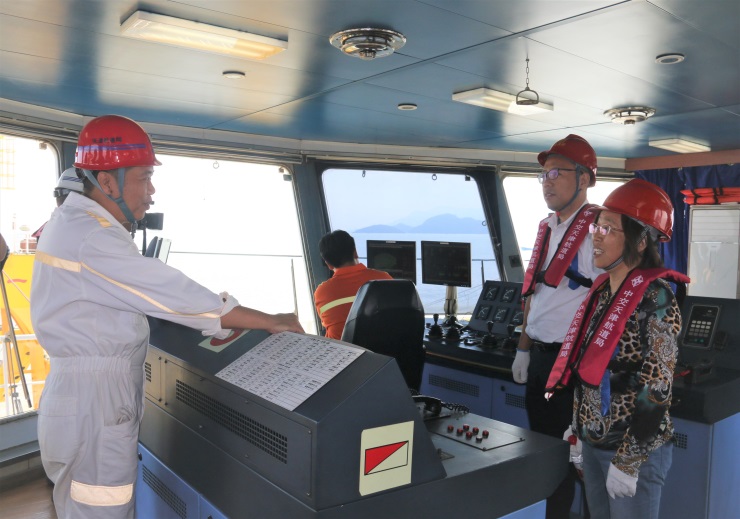 活動中,周總一行帶著月餅、油等慰問品,對在“天鳳”絞吸船上忙碌的一線員工進行走訪慰問,他們認真聽取船上負責人對各個工程進展的工作匯報,了解假期的值班安排情況,對一線員工的辛勤工作表示真誠的感謝,為合作的施工單位帶來中秋國慶衷心的問候和祝福,同時叮囑大家做好中秋國慶雙節(jié)期間的安全生產(chǎn)工作,在保證安全、質(zhì)量的前提下抓進度、趕工期,確保各項任務指標高質(zhì)、高效完成。