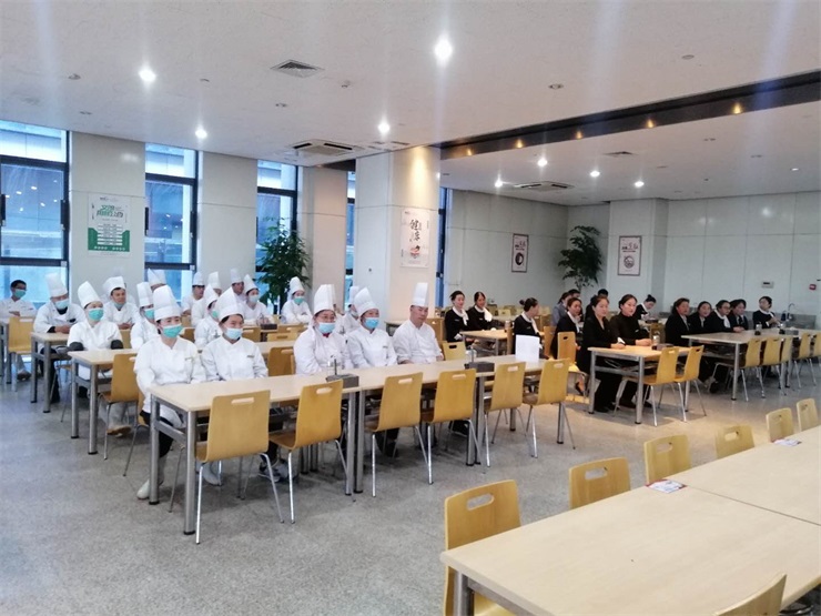 在經(jīng)過衛(wèi)生清潔、物品盤點(diǎn)、氛圍營(yíng)造等工作之后,10月8日上午,花果山酒店接管新海連集團(tuán)員工食堂的進(jìn)駐動(dòng)員會(huì)在新海連集團(tuán)員工餐廳內(nèi)正式舉行?;ü骄频昕偨?jīng)理在會(huì)上對(duì)整個(gè)管理團(tuán)隊(duì)進(jìn)行了全方位的思想動(dòng)員,在提出嚴(yán)格要求的同時(shí)也對(duì)該項(xiàng)目以后的經(jīng)營(yíng)發(fā)展給予了殷切的期望。
