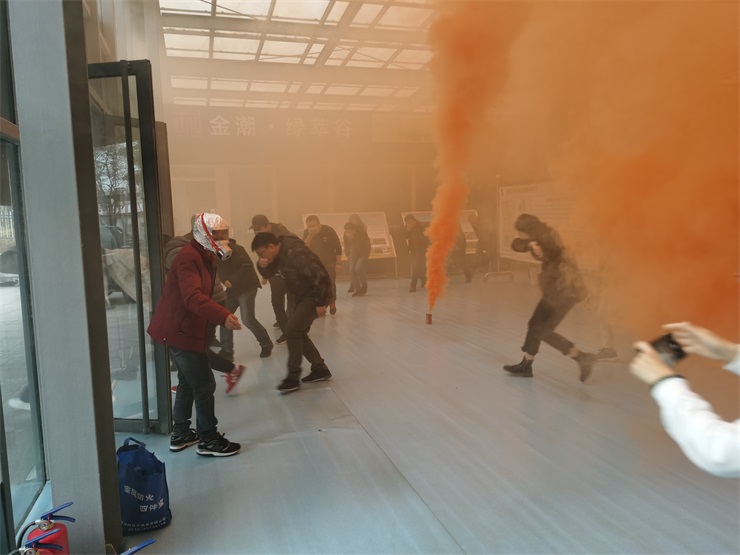 活動特邀連云港政安消防中心孫海東教官,首先從消防基本常識講解入手,對滅火器、防煙面罩等消防器具的使用方法進行了詳細展示。然后在教官的指導(dǎo)下全員模擬突發(fā)火災(zāi)如何正確有序疏散逃生,玻璃陽光房內(nèi)煙霧彈開啟,一聲令下,所有人員手捂口鼻,彎腰有序撤離,達到了預(yù)期的演練效果。最后進行滅火演習(xí),教官現(xiàn)場演示使用滅火器正確滅火技巧,隨后引燃火盆,全體員工依次手持滅火器進行滅火操作,真正掌握滅火器的操作與使用。