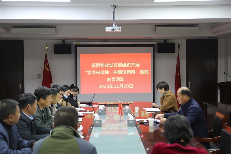 為緬懷偉人豐功偉績,傳承弘揚(yáng)恩來精神,不斷強(qiáng)化黨性觀念,加強(qiáng)黨風(fēng)廉政建設(shè),11月20日下午蒼梧物業(yè)黨支部組織黨員開展“學(xué)恩來精神,樹廉潔新風(fēng)”廉政教育活動(dòng)。