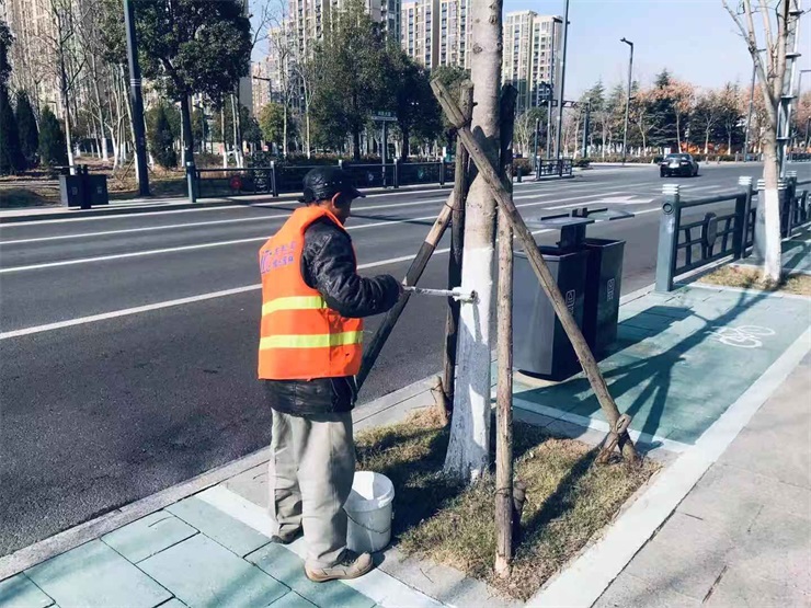 樹木涂白是綠化養(yǎng)護管理的一項重要內(nèi)容,涂白對樹木越冬能夠起到一定的保護作用,涂白后因白色具有反光作用,吸熱少,樹木不會因晝夜氣溫劇變而受到明顯影響,可以防止和減輕日灼、凍害,從而確保樹木健康成長。